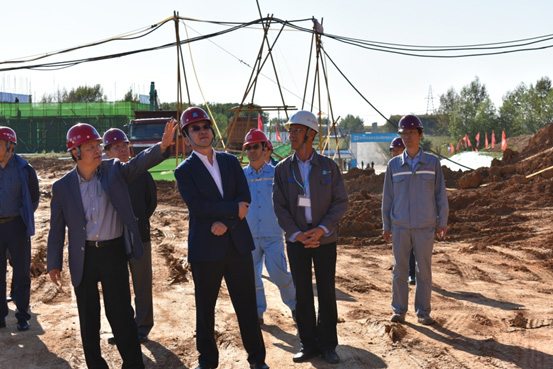 9月27日,王廣生副市長蒞臨老虎沖生活垃圾焚燒發(fā)電廠施工現(xiàn)場視察指導工作,集團董事長董強同志介紹項目進展情況。