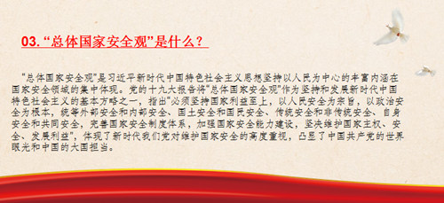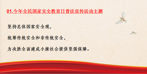 今天是我國第五個全民國家安全教育日,實現(xiàn)中華民族偉大復興的中國夢,保證人民安居樂業(yè),國家安全是頭等大事?!翱傮w國家安全觀”是什么,今年的活動主題是什么?速來了解。